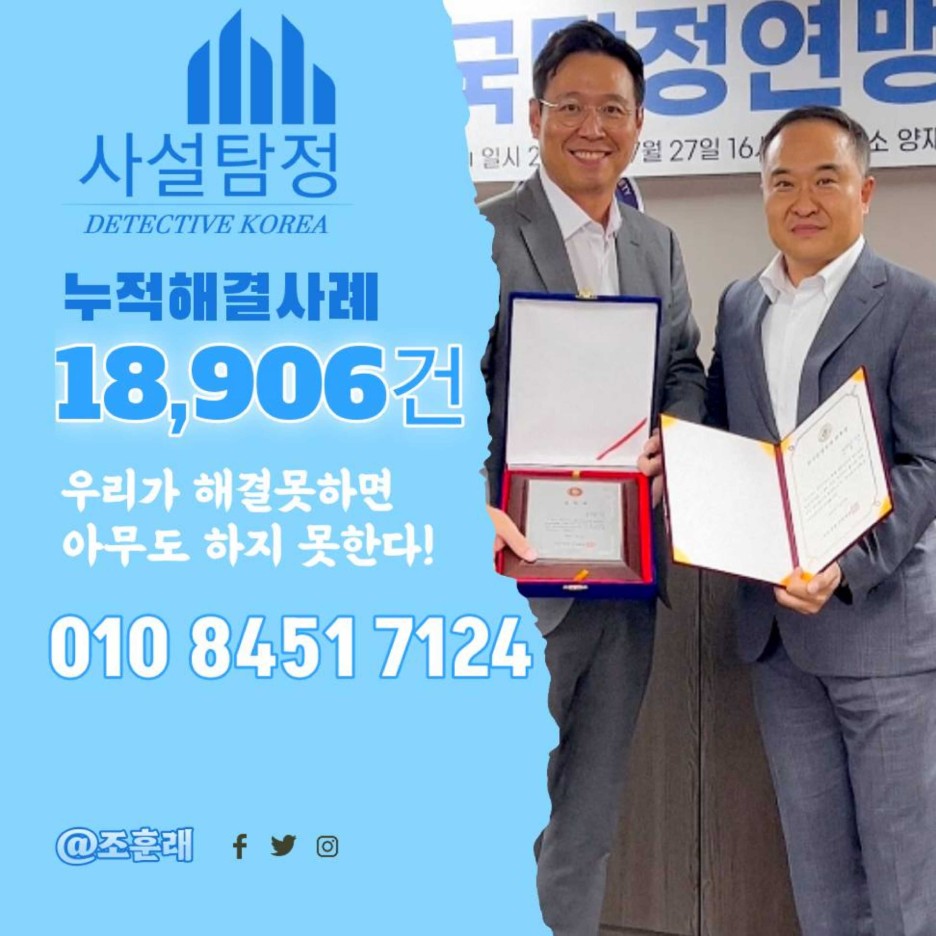 앞서 말씀드렸던 주의사항만 잘 인지하시더라도, 가장 힘든 순간 도움을 줄 수 있는 믿을 수 있는 검증된 탐정업체를 선택하실 수 있습니다.