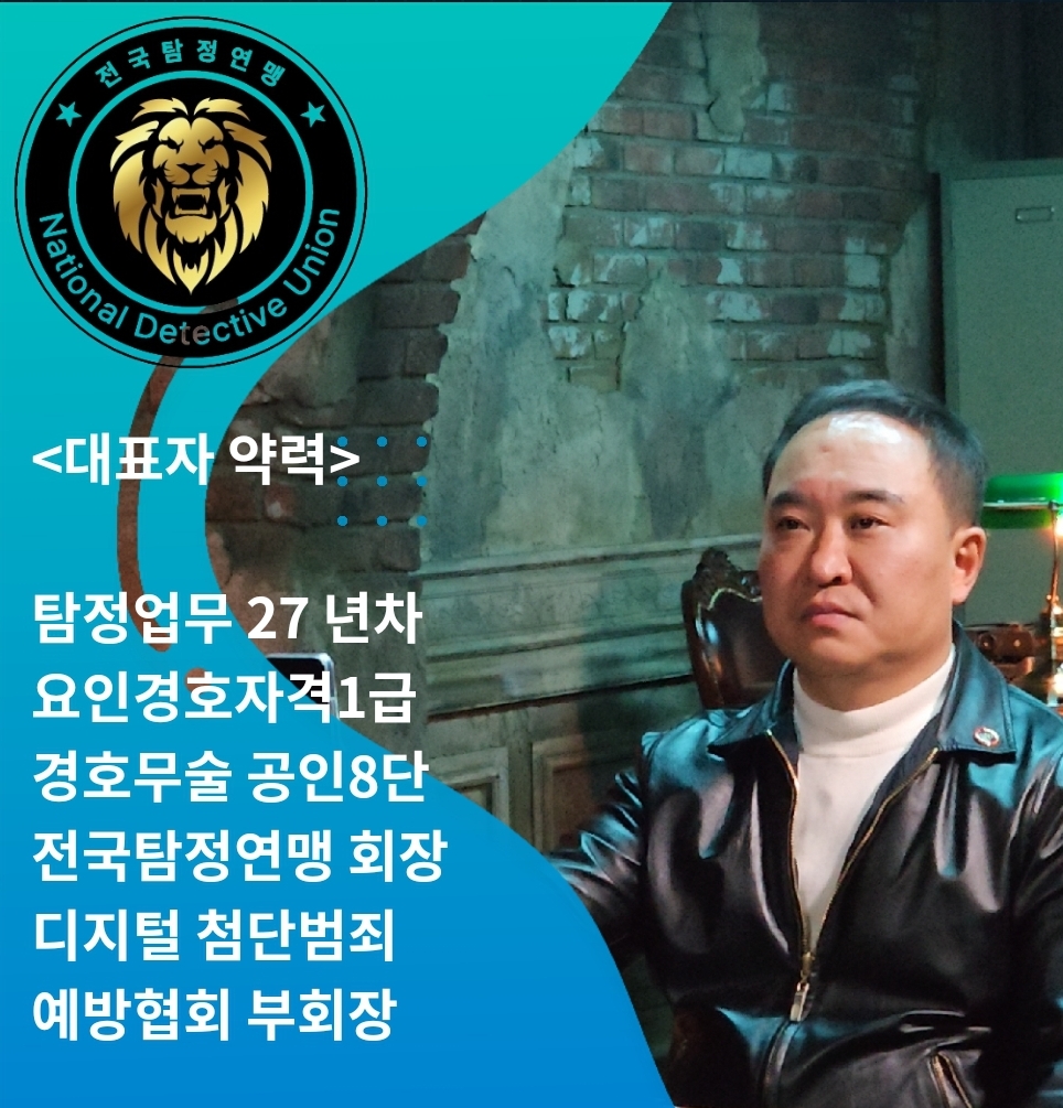 해당 조건에 맞는 큰 규모의 협회중 '전국탐정연맹' 이라는 곳이 있으며 그 단체를 대표하는 업체가 바로 '디텍티브 코리아' 입니다.